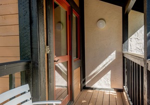 There is a small shared deck at the front entrance to the condo with outdoor furniture. This condo does not have a phone or A/C.