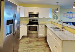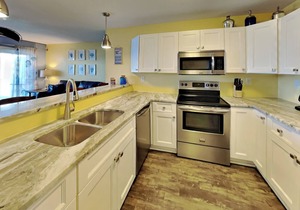 This privately owned and operated waterfront condo is beautifully and tastefully furnished. The beautiful water views from the deck as well as throughout the entire unit are breathtaking and relaxing. This one level, two bedroom, two bath, floor plan has your comfort in mind! The master bedroom is very spacious with two queen beds, and attached bathroom. The second bedroom has one queen with bathroom directly across the hall. Each bedroom also has its own TV. This condo also includes all amenities including washer/dryer and Internet. The condo also has a private deck that includes a pub table, chairs and a grill.