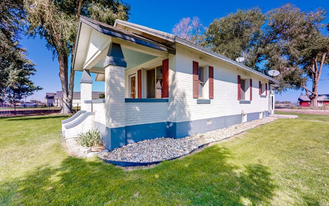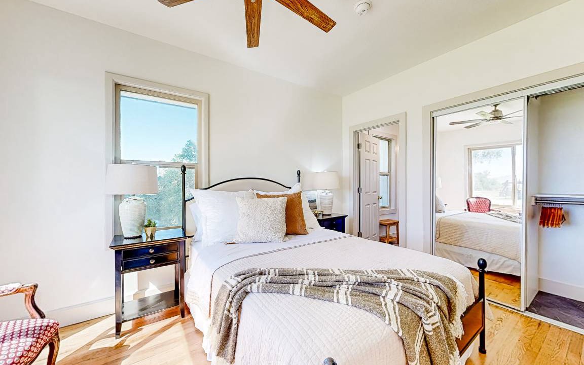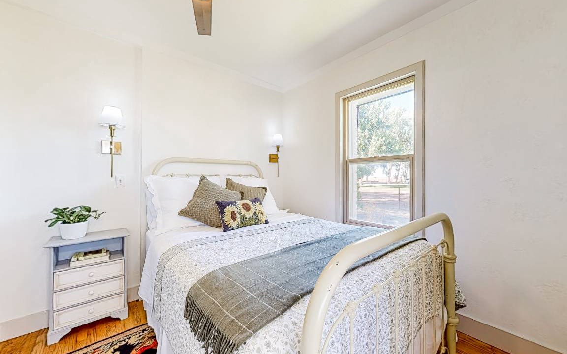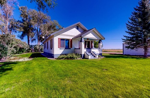 A peaceful country retreat for you and your loved ones, The Farmhouse Cottage sits on a lovely tree-lined property, surrounded by the vast blue sky.
