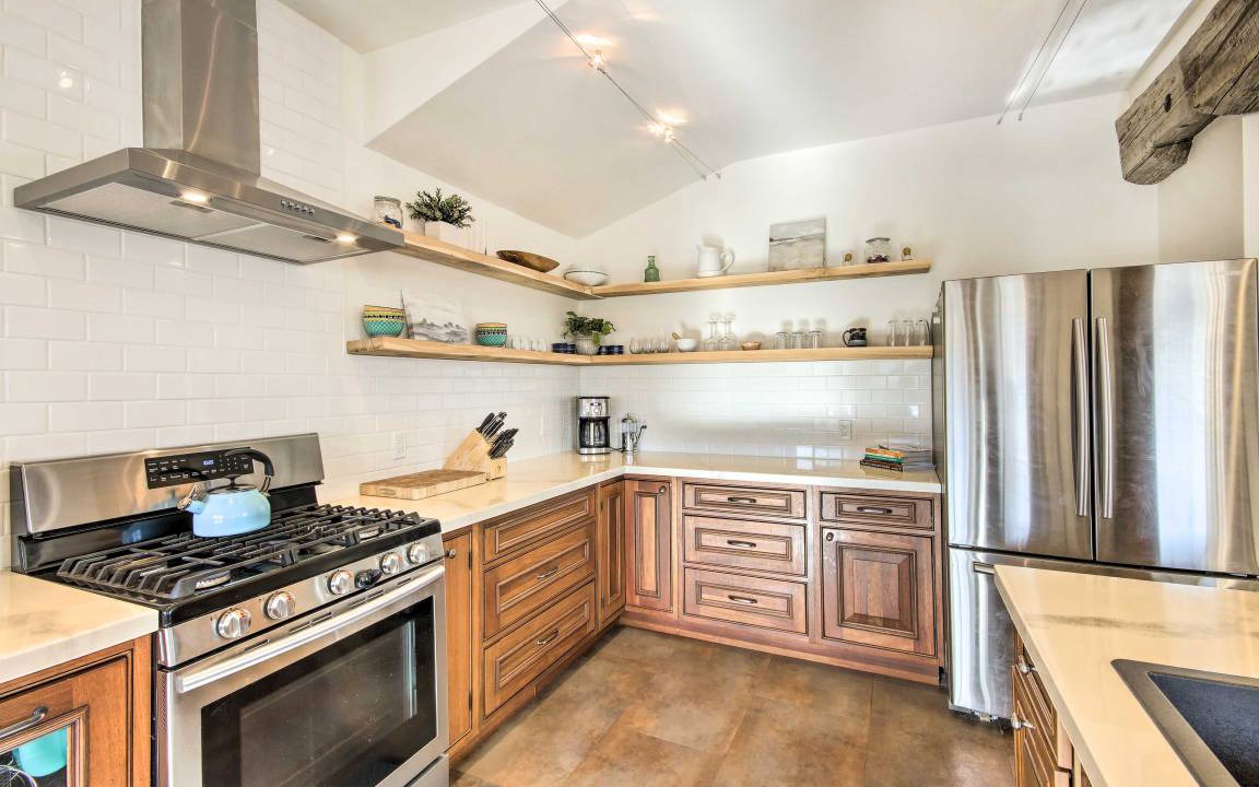 CHEF'S KITCHEN: Cooking basics, breakfast bar w/ seating, stainless steel appliances, spices, dishware & flatware, drip coffee maker, Crockpot, blender
