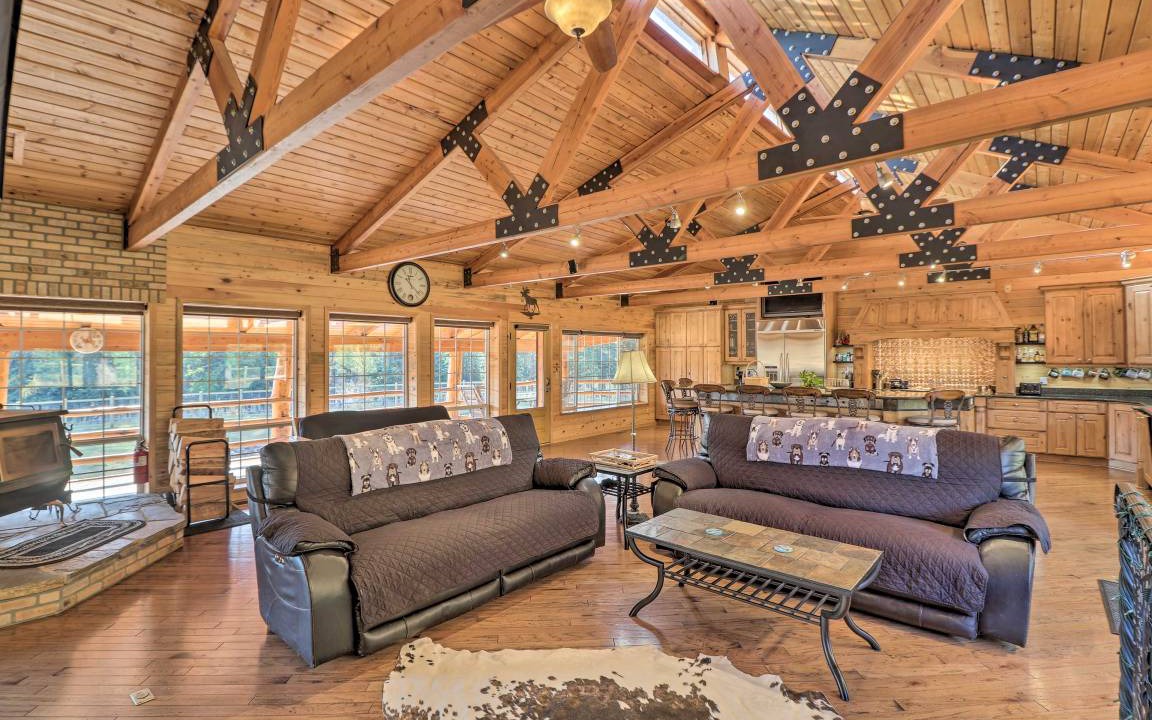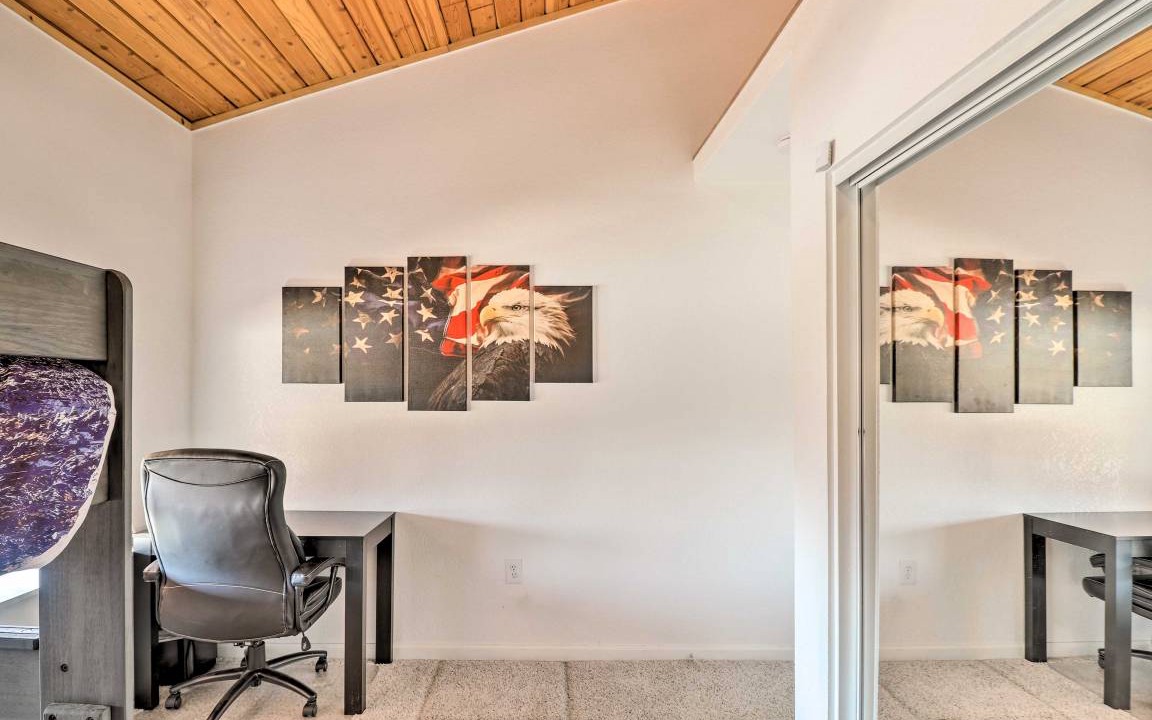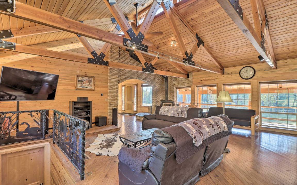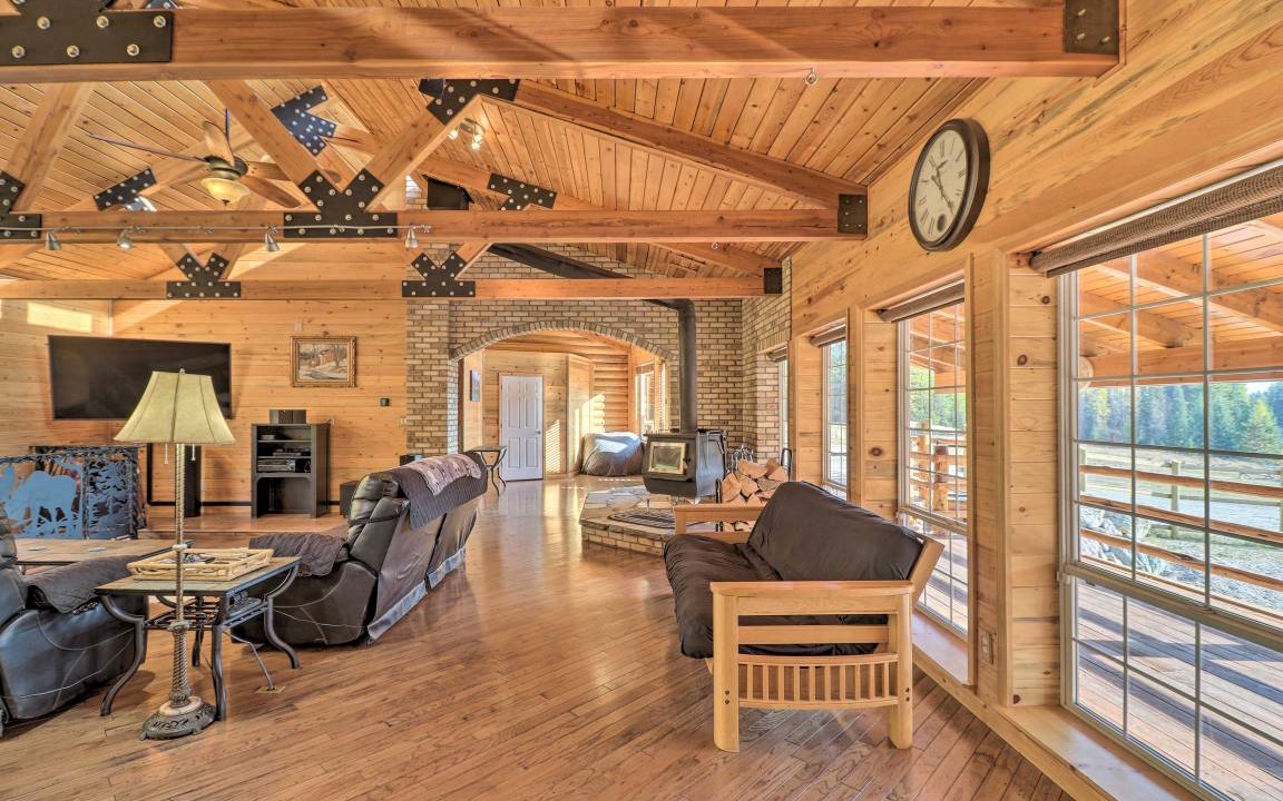 INDOOR LIVING: Open living space, wood-burning stove (wood provided), vaulted ceilings, Smart TVs w/ cable, laptop workspace, ceiling & standing fans, board games, books, humidifier