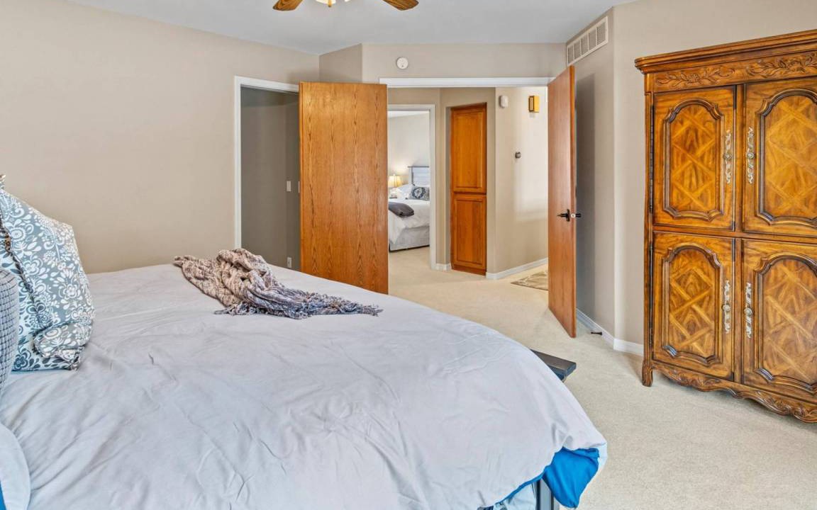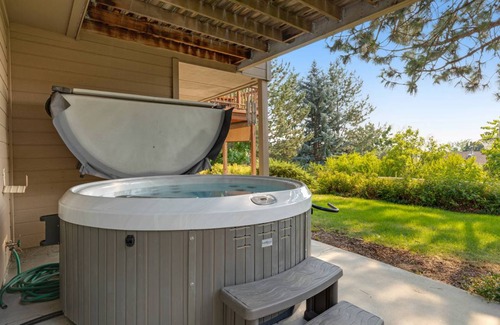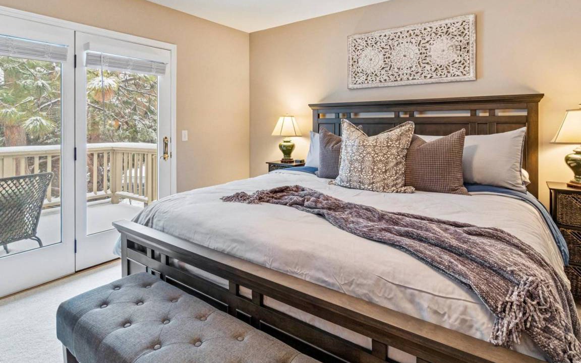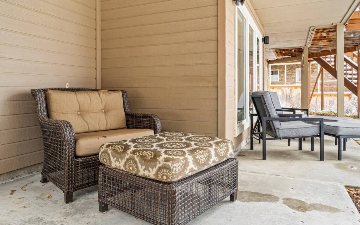 • Bdrm #1 Main Floor Master en Suite with KING Bed, nightstands and lamps on both sides of the bed, bench at end of bed, & armoire. Spacious walk-in closet with shelving and ample of hangers! Master bathroom features a double sink vanity, walk-in tiled shower, & toilet. Plus, a soaking tub for ultimate relaxation and self love! Private balcony with lounge seating for you to sit and take in the amazing Boise sunrises and sunsets or drink your morning coffee or evening cocktail.