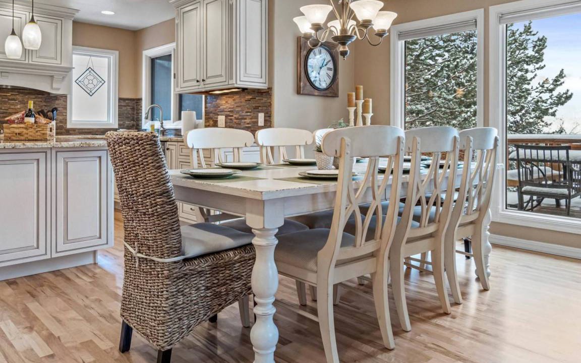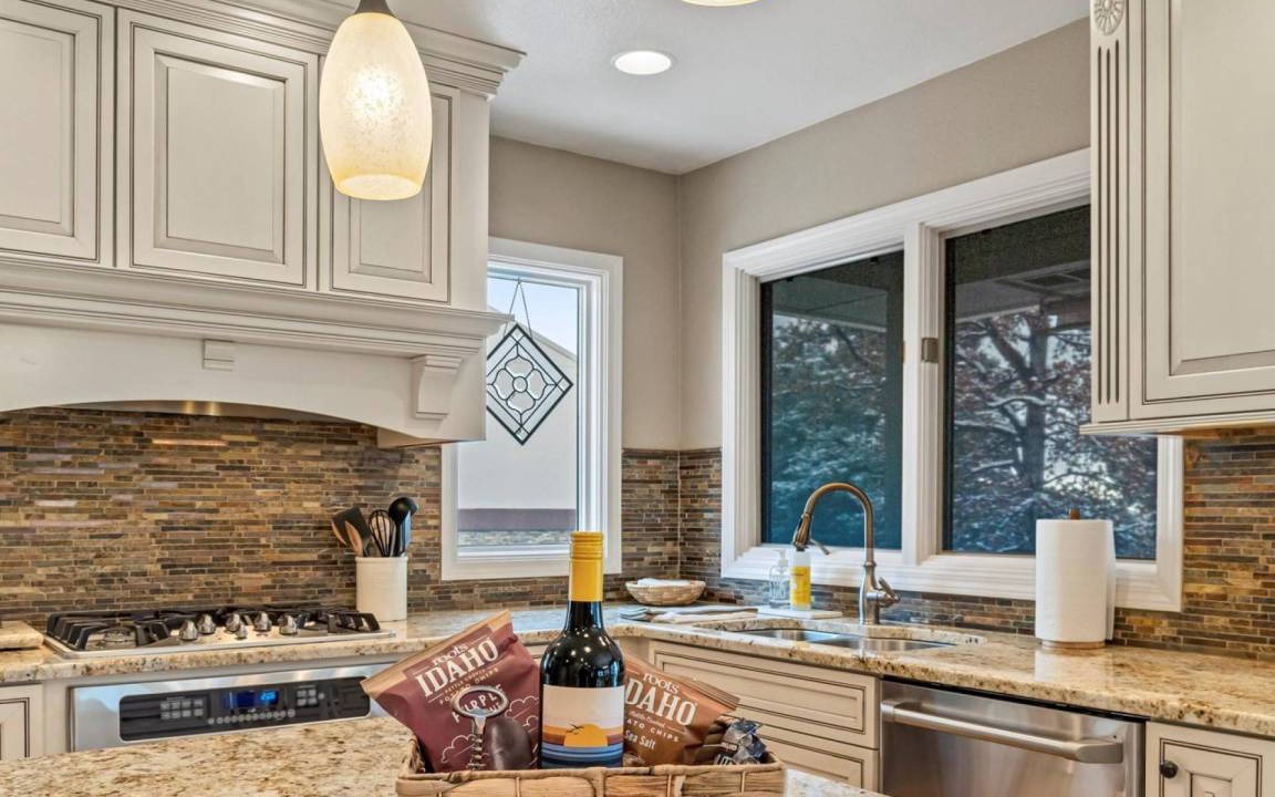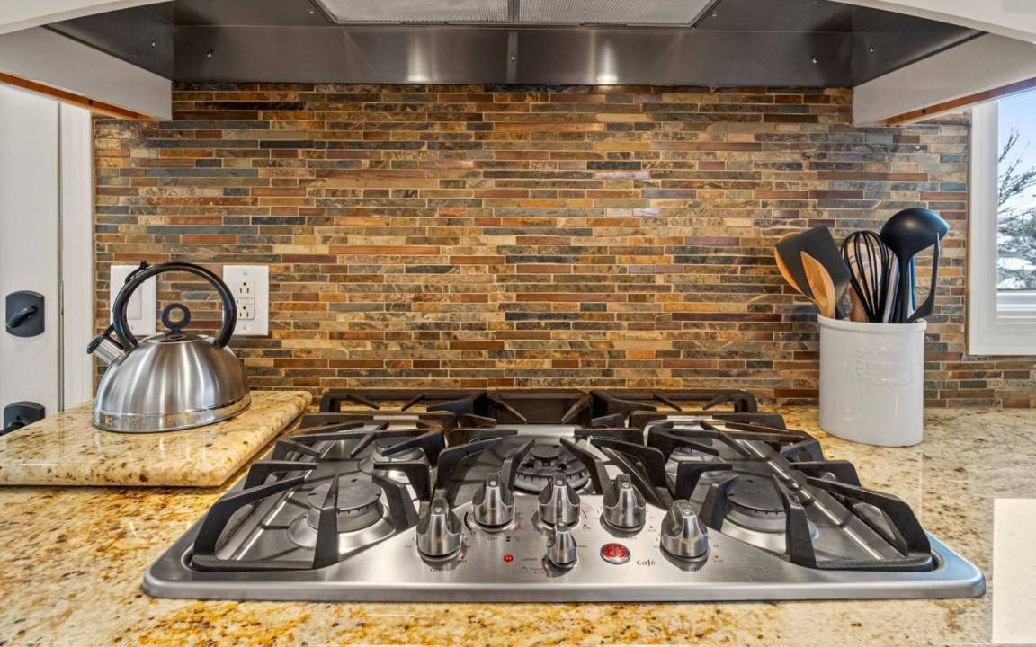 You'll enter into a welcoming and open floor plan of the kitchen, living room, and dining room. The open space extends even further onto the wrap around deck with an outdoor dining table and BBQ. The kitchen features beautiful custom cabinetry with lots of space for the abundant cooking utensils and tools provided for guests, stainless steel appliances with gas range, granite countertops, and a spacious pantry stocked with cooking essentials (flour, sugar, etc.). Cook, bake, eat, and enjoy company in the open space of the main floor living area!