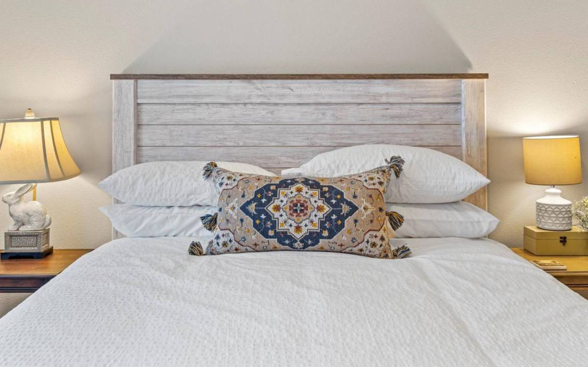 Each bedroom features luxury linens on the beds that you will melt in (680 thread count!). The luxury does not stop there, enjoy the plush towels after you take steaming hot showers or soak in the soaking tub in the master bathroom.