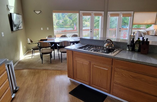 The whole house is yours. You have a custom entry code to a digital lock on the front door. This house is 2400 Sq ft, so spread out and relax. Sit on the couch next to the gas fireplace and watch the birds land on the water or squirrels run across the railing.