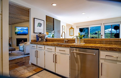 Step into a world of timeless elegance that seamlessly blends French sophistication with chic alpine charm. Immerse yourself in the ambiance of a glowing fireplace while sipping French champagne, stream your favorite shows or music, gather around the table for an intimate dinner party, or step out onto a creekside deck surrounded by breathtaking mountain and valley views.