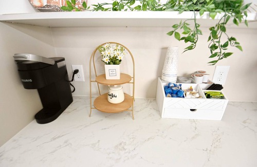 A Keurig coffee maker is available in the kitchen.
