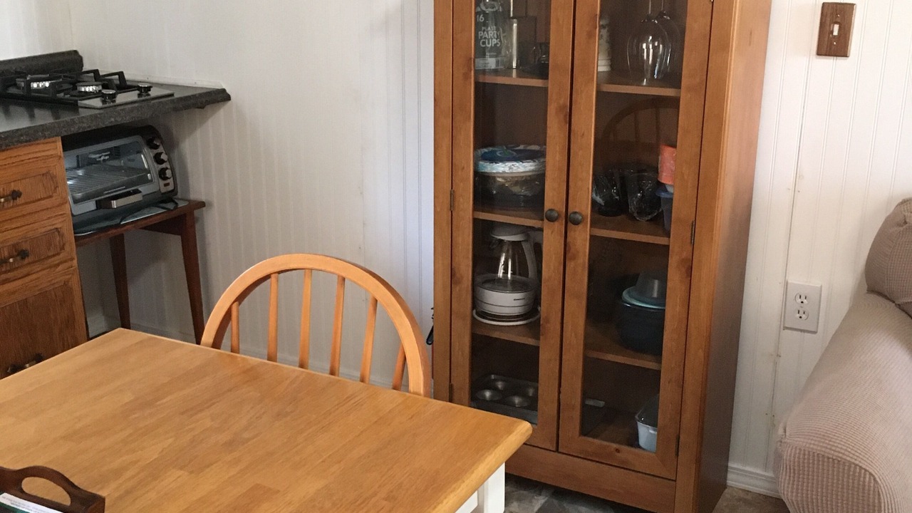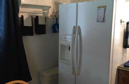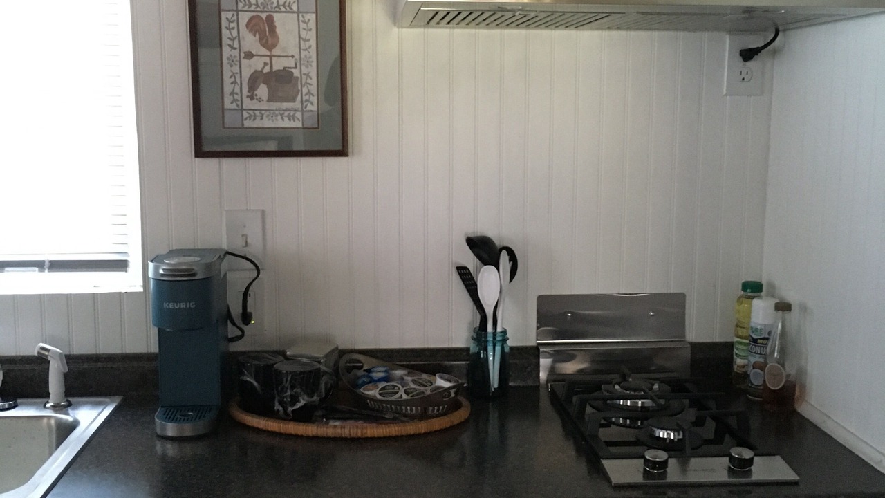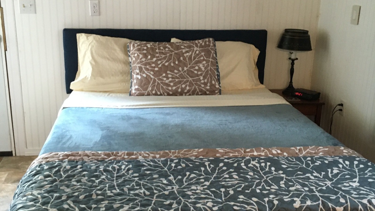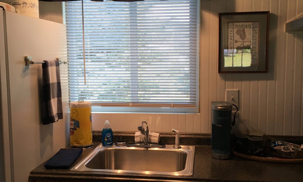 Small one-room cabin with almost complete cooking facilities. Cabin has queen bed, work-from-cabin set-up, dining table, loveseat, and separate bath house next door to cabin. Perfect, quiet location complete with fire pit and BBQ. Additional room on property often available to rent with it and/or sm. trailer available for extra sleeping quarters. Occasional small aircraft noise from take-offs and landings adjacent to cabin. Wildlife-deer, wild turkeys, other possible, and two in/out owner kitty cats on property to greet you. Lots of parking on property. Owners on property to greet you and assistance if needed, but otherwise do not bother interfere with your personal vacation and space. Guests love the quiet, dark nights and lovely calm, sunny days in a park-like setting for good relaxing vacation.