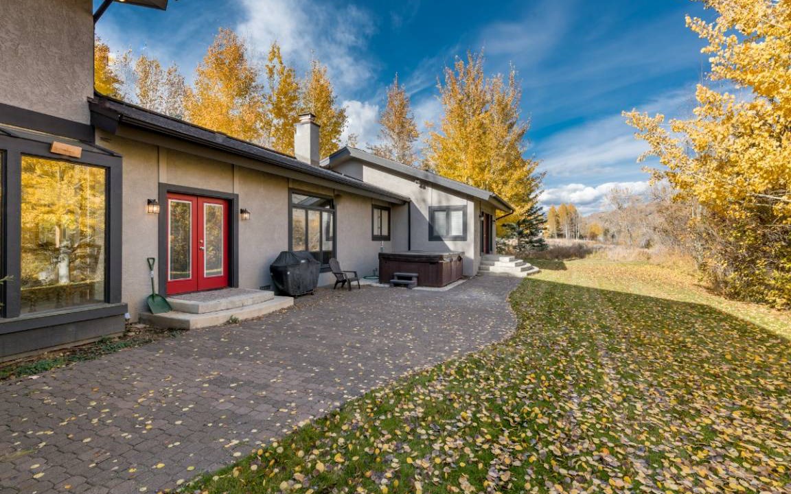The lot is a good size at 1.3 acres. Mature trees on the border of the land create a nice private retreat for you and your group. The large front yard is nicely landscaped with an irrigated and flat lawn area. Out back, you have a very large wraparound patio that is ideal for BBQs and outdoor dining. This is also where you'll find the extra large hot tub, which has plenty of room for 8 adults at a time and lights that change color. With 4 sets of french doors, the front and back yards become an extension of the homes main living space, perfect for entertaining or for you to watch over the kids at play. Parking is no problem either. The 3 car garage is oversized and there is plenty of parking outside for more cars, trailers, or even an RV. The location is very convenient. Downtown Ketchum and the River Run base of the Sun Valley Resort are only 3.6 easy highway miles from the property. If you head south, downtown Hailey has more shops and restaurants to offer only 8 miles away. Bikers, anglers, and beauty enthusiasts will love that the Sawtooth Botanical Gardens, Big Wood River, Wood River Trail system are all a short easy walk, or bike ride, from the home! In fact, you can hop on the Wood River trail and connect to trails throughout the area!