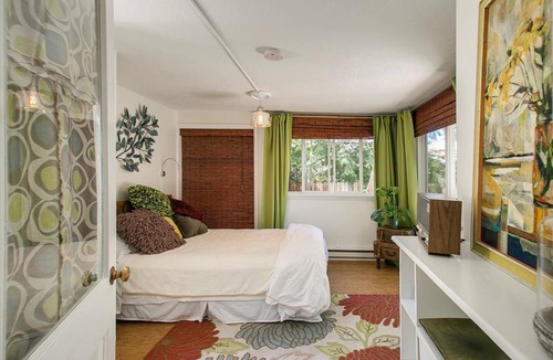 An adorable 2 bedroom, 1 bath bungalow separate from and nestled next to a 1925 home. Easy 8 minutes to airport or 5 min to downtown, yet nicely tucked in a delightful tree-lined neighborhood. Meticulously furnished with new and vintage furniture, art and design. Kitchen fully equipped (including new dishwasher!). Large flat screen TV above working fireplace. Remodeled ADA compliant shower and freshly painted throughout. Owners live on site and happy to share tips on the best of Boise or give you complete privacy :)