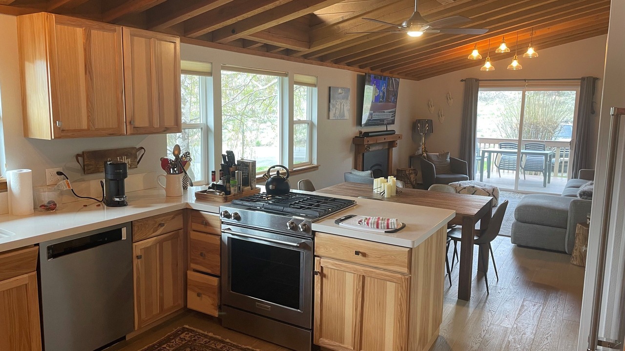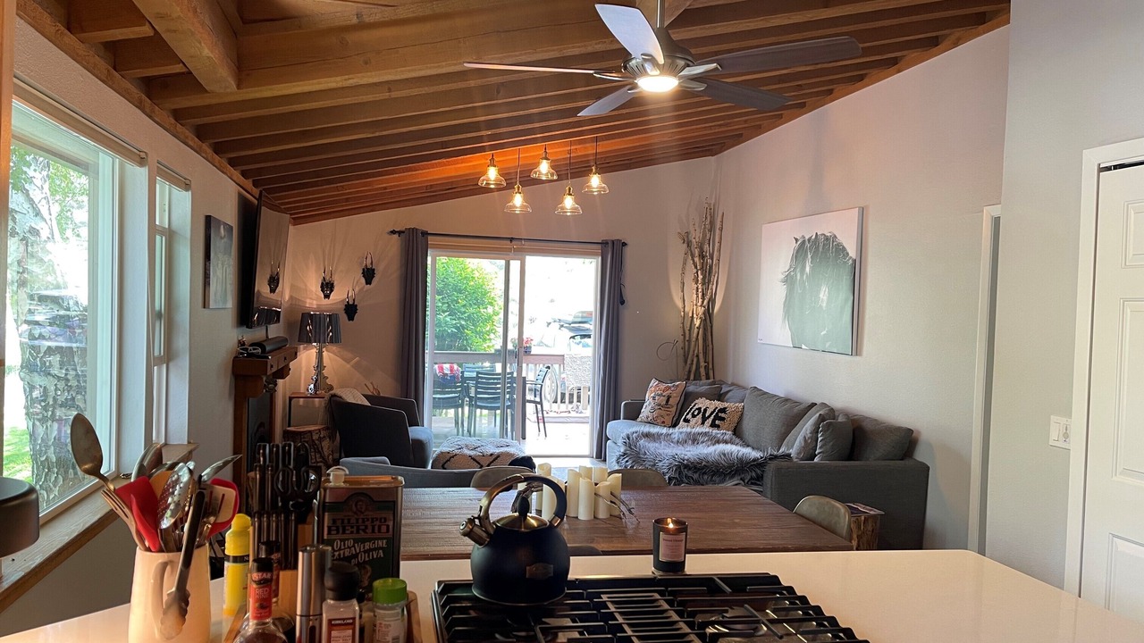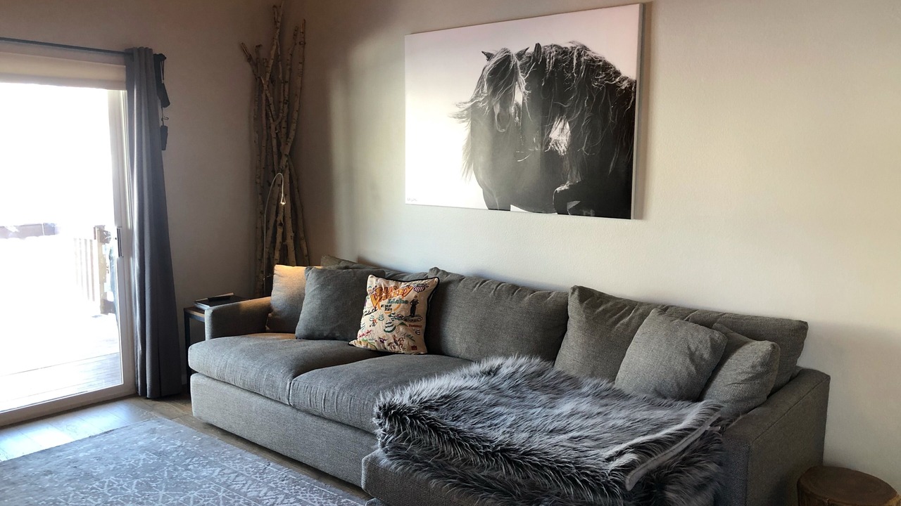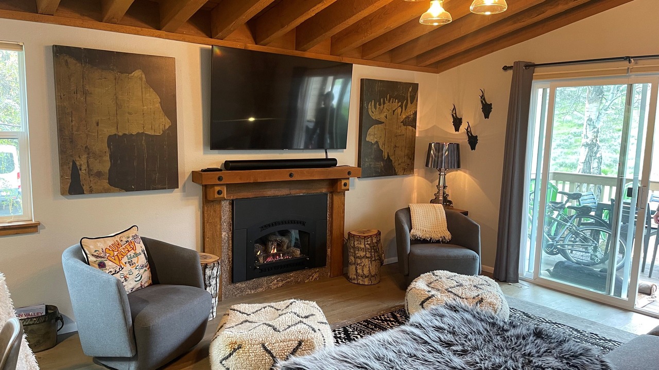 Beautifully furnished 2 bed/2 baths, fireplace, and a comfortable modern kitchen in Elkhorn at the Ranch. This stand-alone ‘bungalow’ sits quietly off of Independence Drive. Furnished with 2 mountain bikes, fenced patio for your pups, BBQ, and 60” Samsung smart-tv’s with Amazon Fire sticks in each room. Log-in and enjoy movie night or enjoy Hulu Live. Walk outside to numerous hikes, bus stop to Baldy or downtown, enjoy the amenities of The Ranch (game room, hot tub, bar & pool) or visit the Harker Center and Village pools, tennis and pickleball courts. Sit on the deck and watch the elk walk by! Dogs welcome!