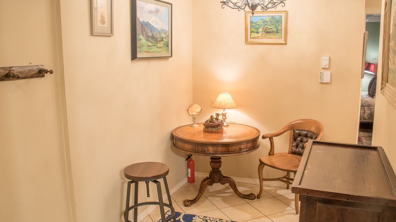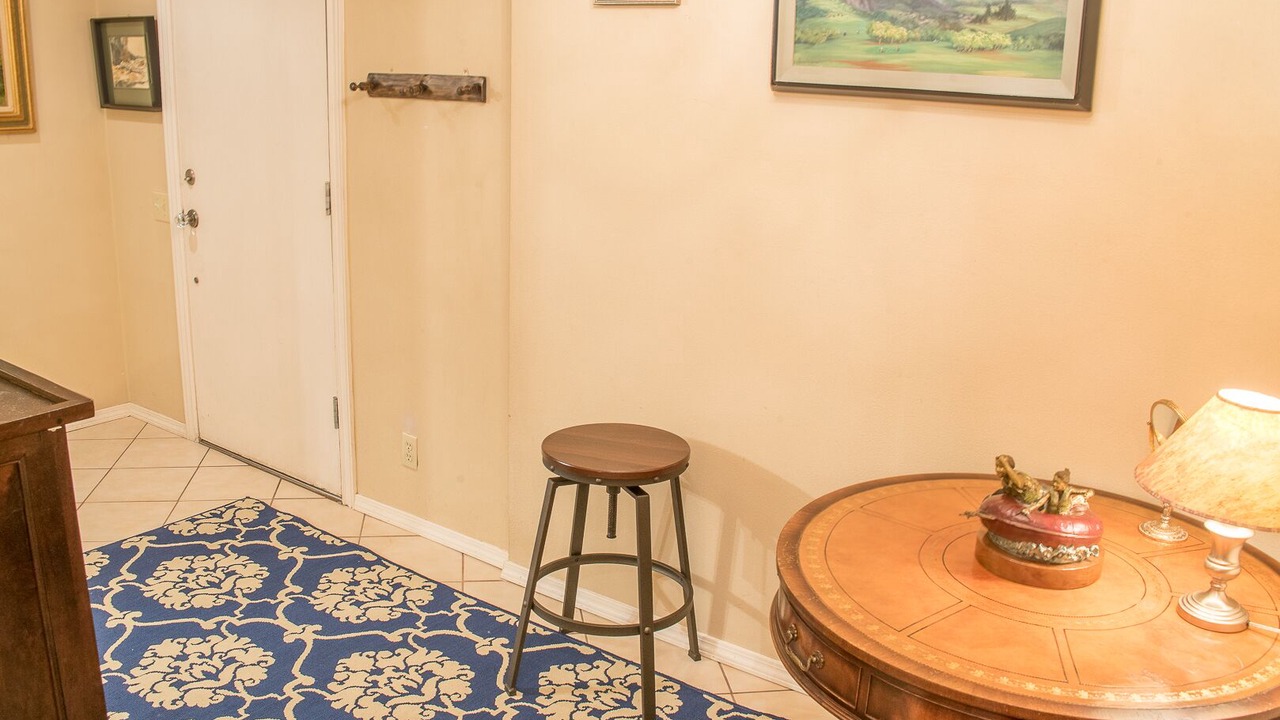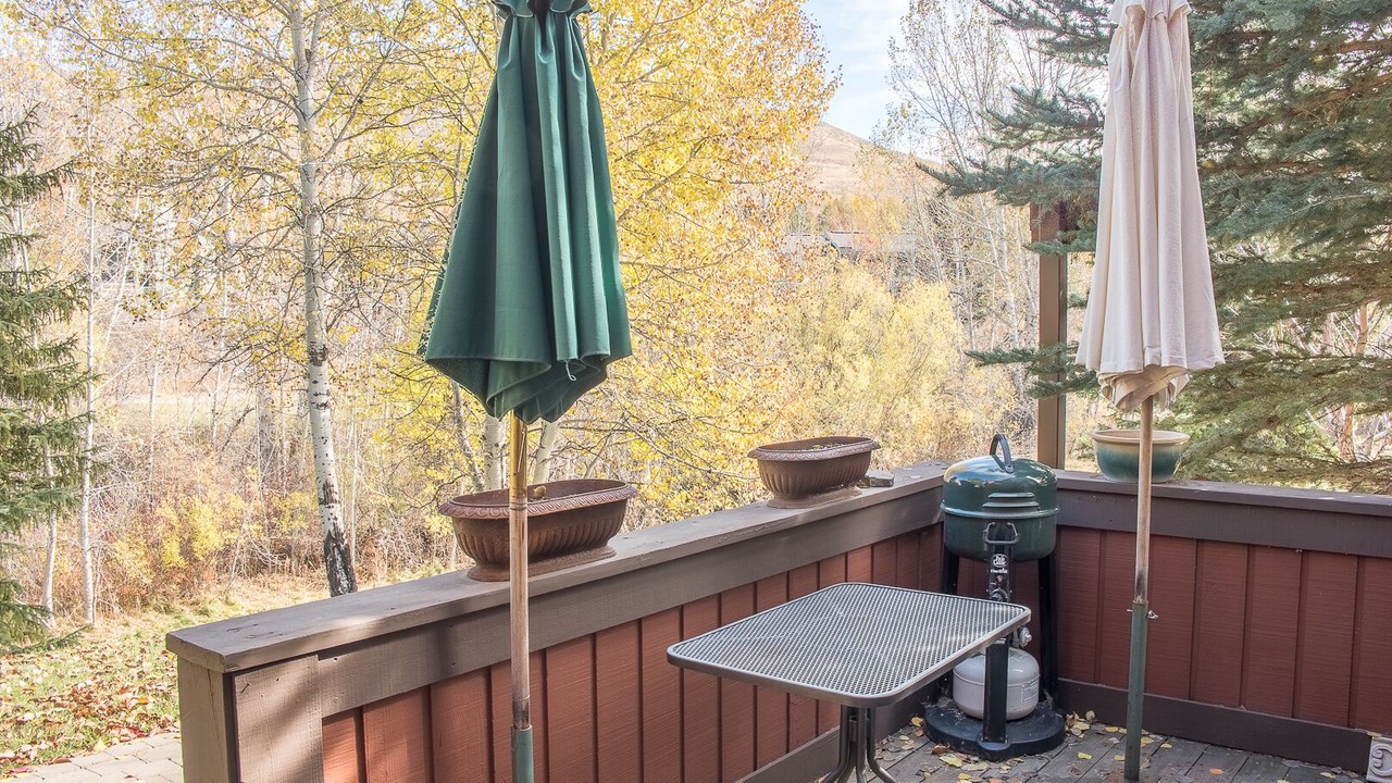 There is a small shared deck at the front entrance to the condo with outdoor furniture. This condo does not have a phone or A/C.