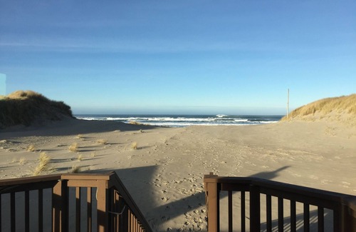 Walk out the door onto the sand. Enjoy the small town feel and breathtaking views out every window. Our family friendly home sleeps 8. This home is located just north of Waldport in the Bayshores community and has access to Bayshores outdoor pool, fitness and tennis facilities. It is a 15 minute drive to Newport's Oregon Coast Aquarium and nestled between the ocean and Alsea Bay.
