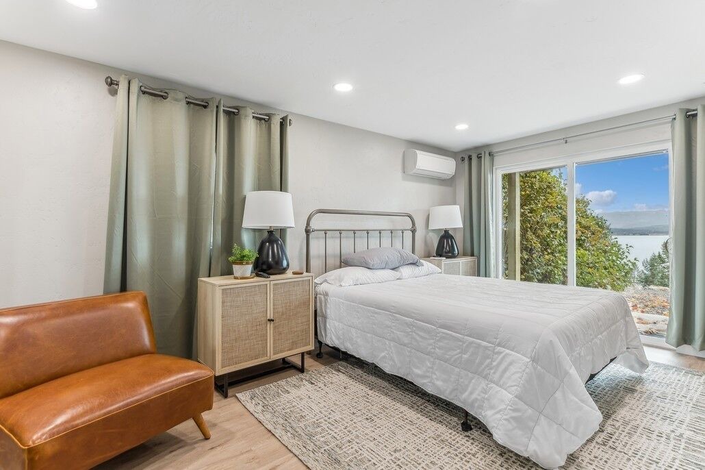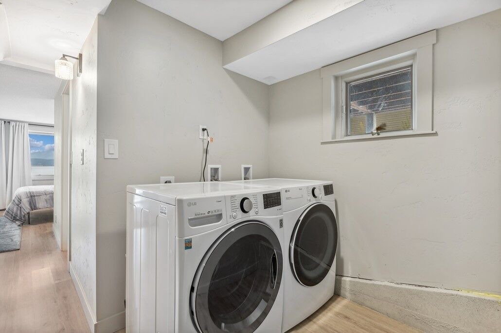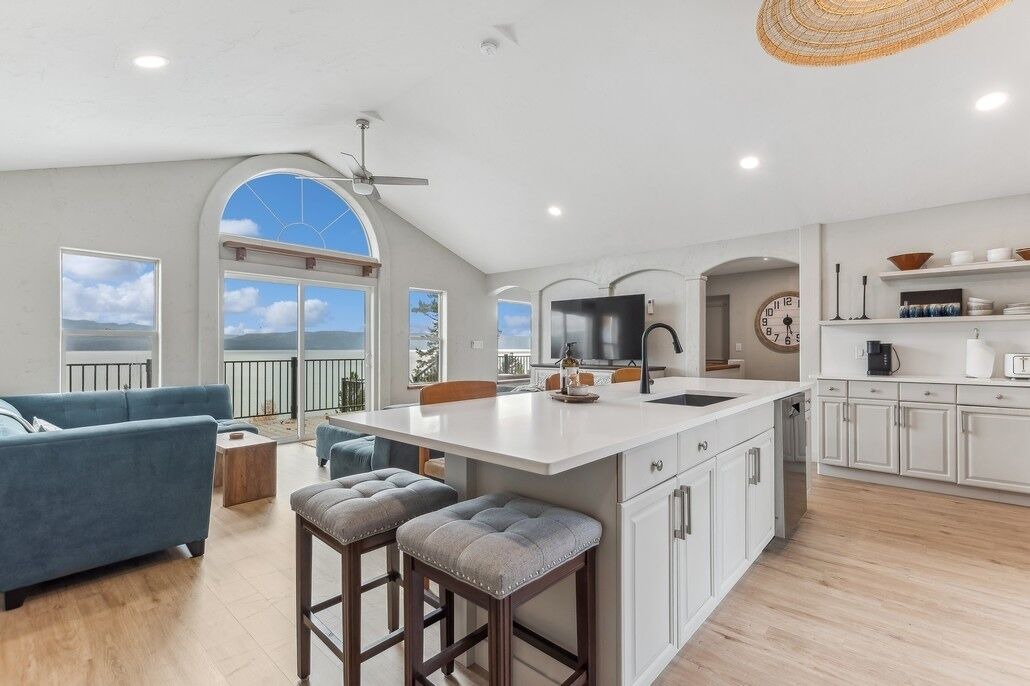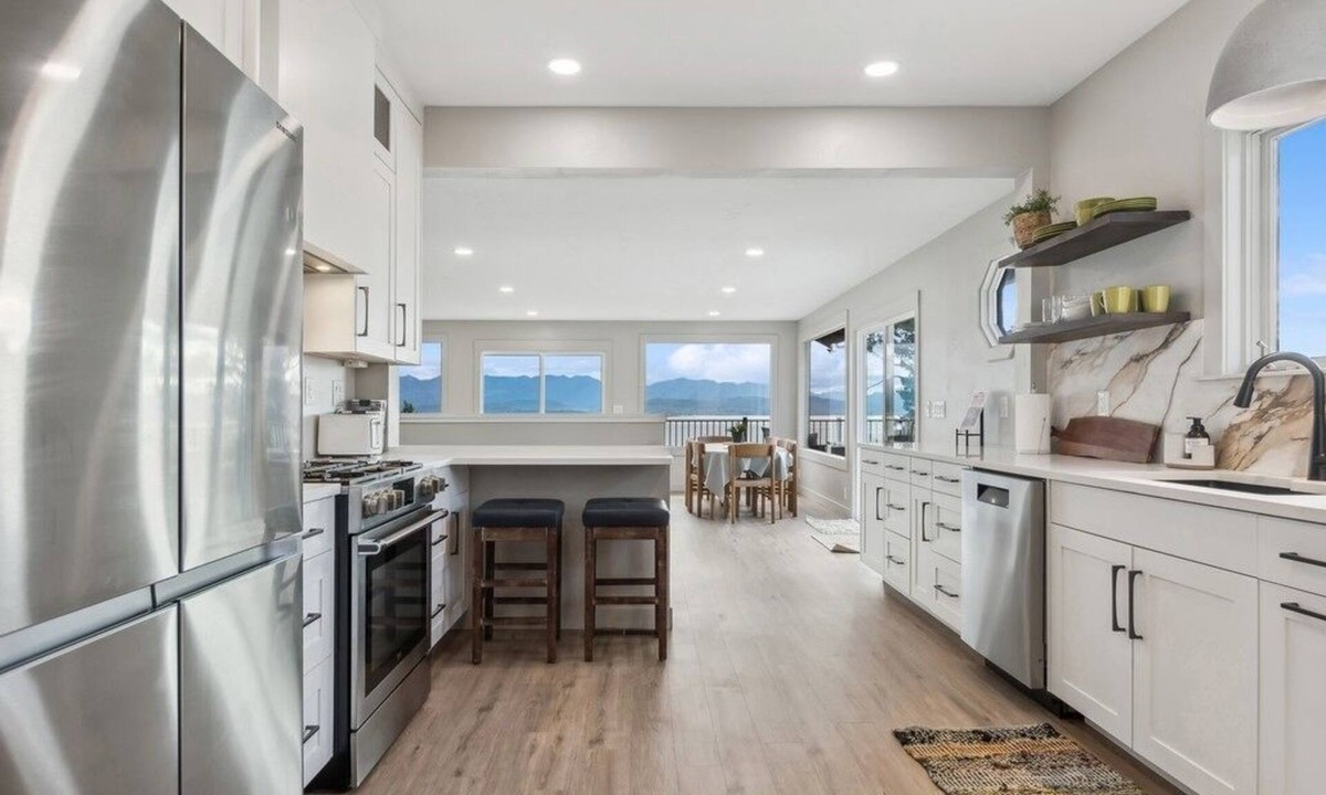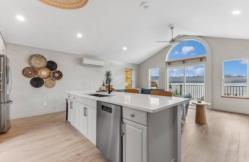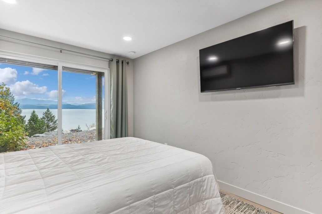 Beautiful home with breathtaking views of Flathead Lake. This 6 bed/5 bath home with 2 separate full kitchens including: full size refrigerators, dishwashers and gas ranges, 2 living rooms, 2 sets of laundry units, full deck and a steep trail down to Flathead Lake is unbeatable for large/multiple families. 5 bedrooms with queen size beds and 1 large bedroom with 2-fold out beds and queen bed. Large deck and yard with views of Flathead Lake, Mission Mountain, Swan Mountains, and towards Glacier Park. Close to Whitefish, Whitefish Ski Resort, Blacktail Ski Resort, Glacier National Park, Lakeside, Bigfork and Kalispell.