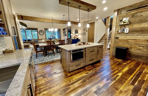 As you step inside this two story home, you'll be greeted by a warm and inviting atmosphere, complete with accents relating to the rich mining history of the area, a cozy fireplace and a smart TV for your entertainment. The fully stocked kitchen, equipped with a spacious island, gas stove/oven, refrigerator, microwave, dishwasher and all the necessary countertop appliances, allows you to whip up delicious meals and enjoy them at the spacious dining table that seats 10. Our well equipped kitchen is a favorite, please read our reviews!