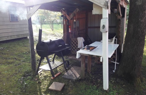 Here at the Hideaway you have your own private porch with outdoor table and chairs. Plus 2 recliner chairs. Your private entrance has a security digital lock that you get the code sent to you the morning of your arrival. There is an outside grilling area that is available for cooking your meals. Along with the smoker/charcoal grill there is a 2 burner Coleman propane stove for cooking too. Inside there is a microwave and toaster. For entertainment there is a 32" TV (only local channels available) and DVD player with a small assortment of DVD's to watch. Several of the movies were made right here at Caddo Lake. The bathroom is rather large and spacious and there are plenty of extra towels in the bathroom cabinet. Even though it is attached to the main structure it is totally secluded with its own private porch and entrance and you will have no contact with anyone if that's your preference. Everything here at the Hideaway is all yours and nobody else is around, just total privacy for you and yours! But we are nearby and available anytime if needed. The cabin is great for 2 adults but can accommodate a max of 3 persons. We recommend a minimum age of 13 for all cabin guests. For more info on all we have to offer can be found on our website. Please, visit caddolakehideaway.com for complete detailed information on our facility. There you will find many more photos as well as some videos. Most all questions can be answered by visiting our site. If after you read over all we have to offer and you still have any unanswered questions please contact us and we will be more than happy to assist you. Thank you, and we look forward to hosting you.