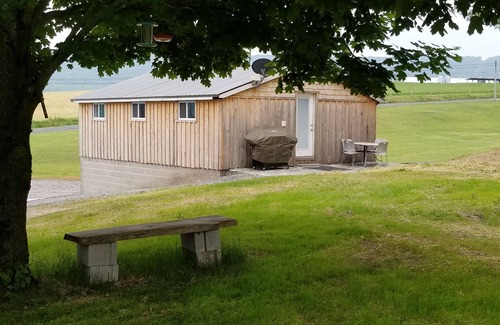 A cozy 2 bedroom cabin with Eastern white pine shiplap walls and tonge and groove ceilings. Complete with full well furnished kitchen and Bathroom / w large custom tile shower! Larger bedroom has a queen size bed and the other bedroom has a full bed. The outside areas include patio, pergola area and large fire pit for those amazing times with friends and family!