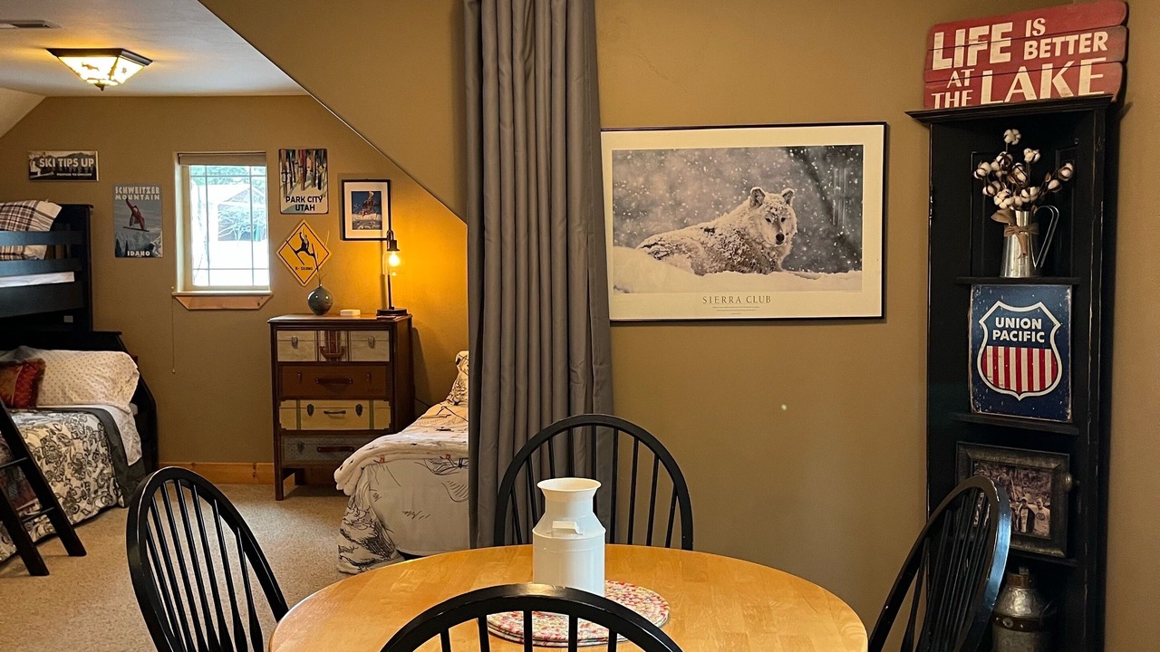 Relaxing hideout in the woods, 1,200 sq. ft. apartment to hang out after a day of skiing, hiking, biking or playing on the water or a long day at the Hub Sports Center. Centrally located right in between Coeur d’ Alene Idaho and Spokane, WA(20 minutes). Silverwood Theme Park is 30 minutes and 45 minutes from multiple ski resorts. Located on Hauser Lake and many other lakes close by (Newman Lake, Liberty lake, Twin Lakes, Spirit Lake, Hayden Lake and Lake Coeur d’Alene).