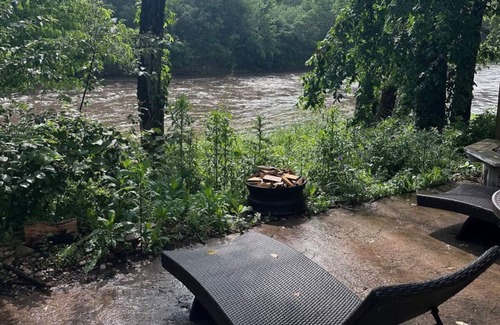 Located on the river tucked away from traffic, very quiet and beautiful space. Newly constructed cabins in 2018 , with a bathroom and loft just added in the beginning of 2025. Includes 60 inch smart TV, Wi-Fi, cable tv and private laundry for those staying in cabins. Heated pool open from memorial day to labor day, and free to use during your stay. This cabin is sure to make your stay one to remember!