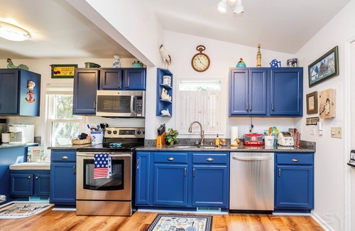 Soap, toiletries, linens, towels, silverware, coffee, bluetooth speakers, volleyball, and all basic cooking or grilling necessities (and then some!) are provided. We store a kayak, cornhole/bags game, and a weber grill for our guests (request the kayak or cornhole in advance so your hosts can set you up). Be sure to try the indoor Ms. Pac Man arcade game, too!