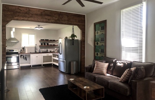 Our home was designed with conscious care and the comfort of our guests in mind. You will have access to the entire one-level 1200 sq ft space. The house offers plenty of natural sunlight, high ceilings, and a clean open space. Each room is furnished with a ceiling fan, ample closet place, and a full-length mirror. The kitchen is stocked with the basic amenities needed for coffee and cooking. The washer and dryer is available for guest use.