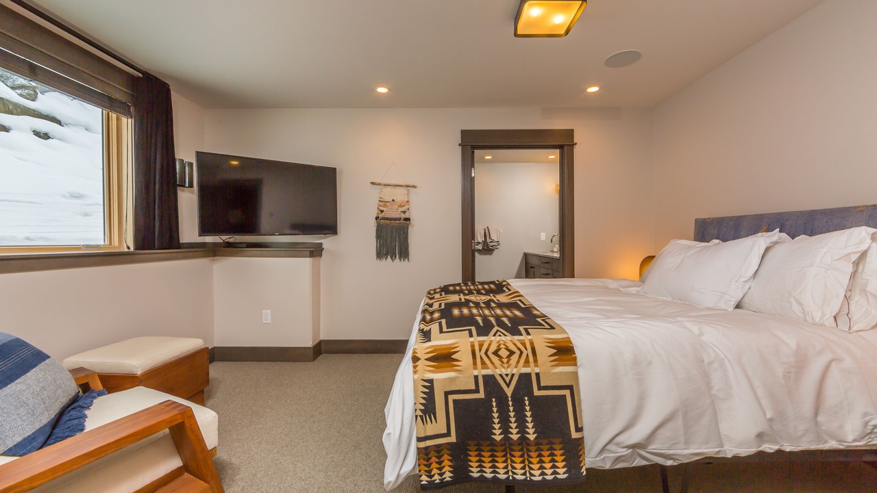 Guest Bedroom with King Bed and En Suite with single vanity and walk-in shower