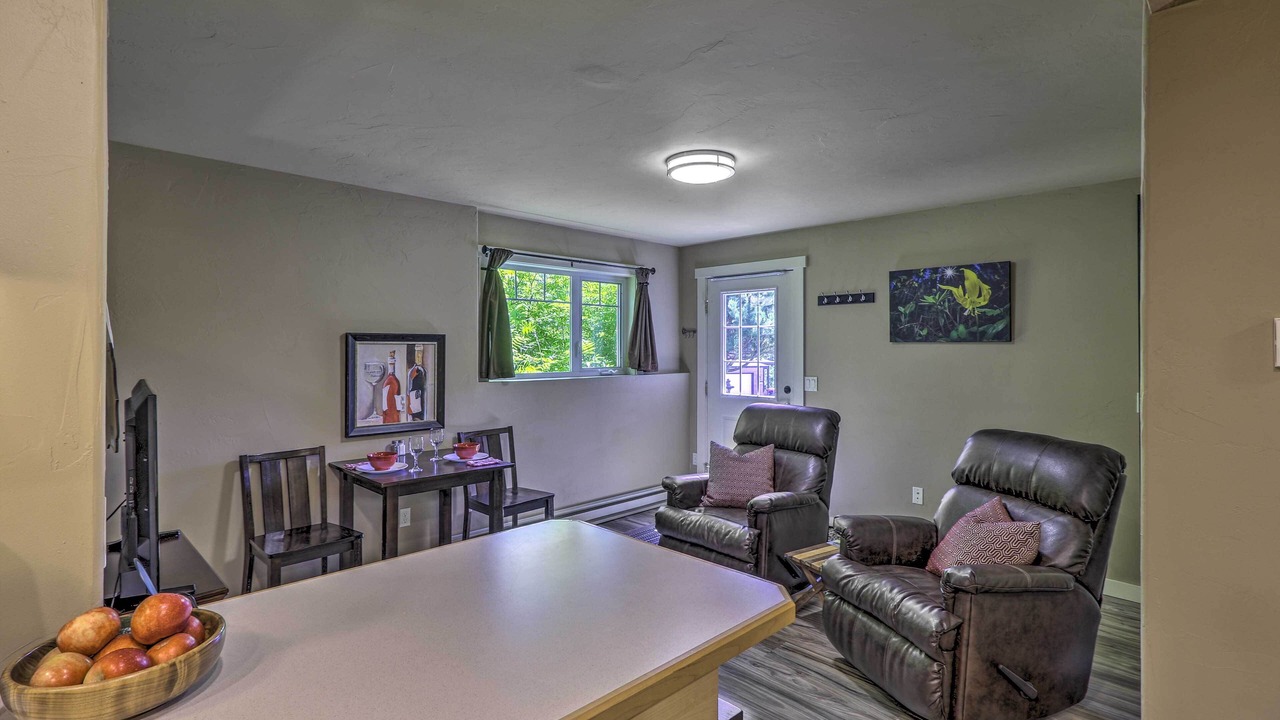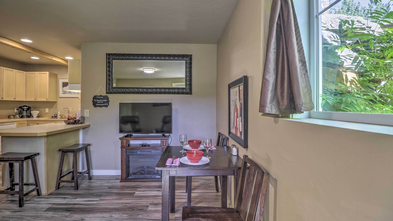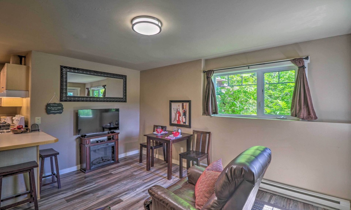 Map out your Montana getaway to this warm and welcoming 1-bedroom, 1-bathroom vacation rental apartment located just a short walk from Downtown Bigfork. This romantic retreat offers a tastefully furnished interior with a full kitchen, free WiFi, a Smart TV, and plenty of privacy. Whether you're in town to fish Flathead Lake, hike around Glacier National Park, or ski Whitefish Mountain Resort, this ground-floor apartment is the perfect mountain home-away-from-home.