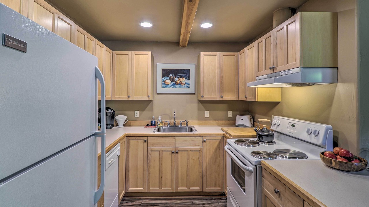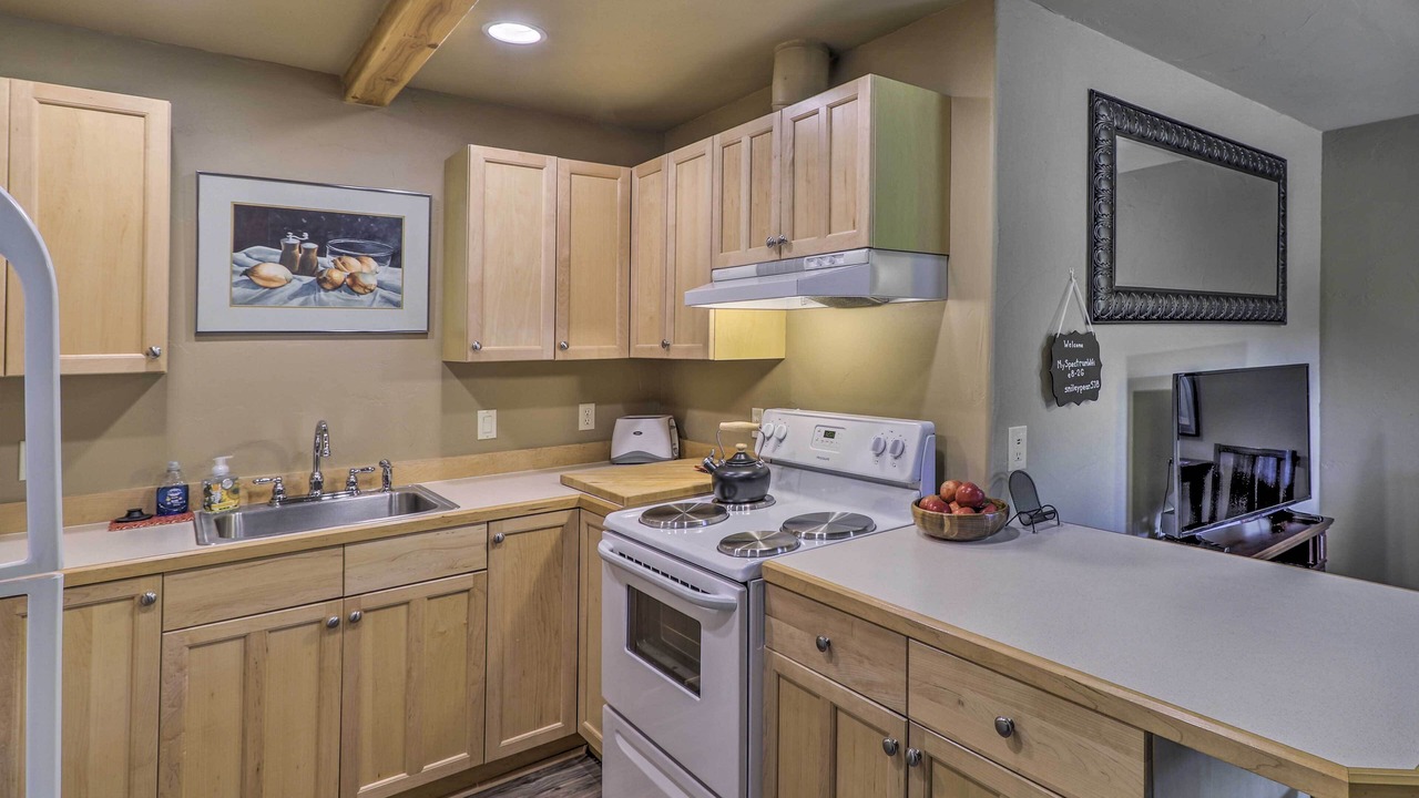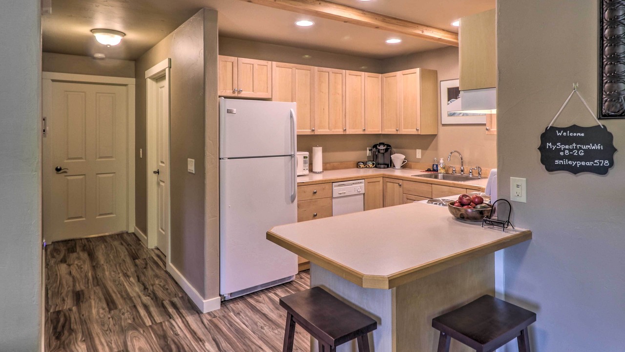 KITCHEN: Fully equipped, cooking basics, Keurig & drip coffee makers, breakfast bar, tea kettle, dishware & silverware