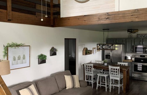 Our welcoming 4 bedroom, 2 bath Cabin will comfortably accommodate 6 guests (Rate includes up to 6 guests, $10 a day for each additional guest, up to 8 guests) while offering a gorgeous mountain top view. This recently renovated and fully furnished Cabin style home is in a perfect location to visit the following surroundings: