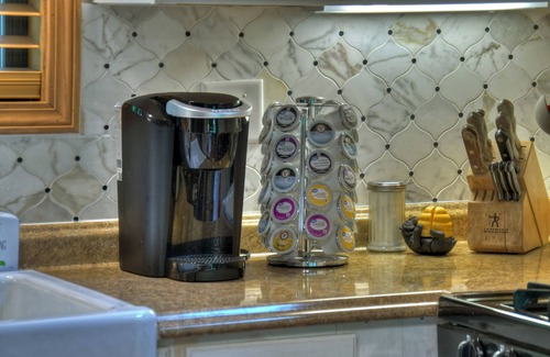 Well-Stocked Kitchen: The kitchen is fully equipped with pots, pans, utensils, a Keurig, and everything you need to prepare meals. The dining table comfortably seats four.