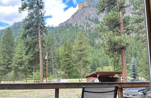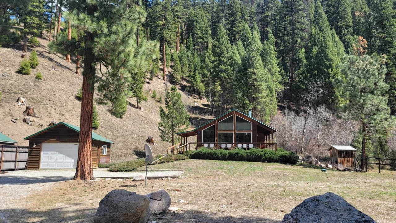 Outdoor person’s paradise & great location for the family 1/2 mile from Painted Rocks Lake State Park and a short walking distance to fishing access on the West Fork River. Lost Trail Powder Mountain is approx 55 minutes drive. This private cozy cabin is nestled up against the woods where there is an abundance of wildlife. Enjoy your coffee & breakfast on the front deck while listening to the West Fork River or relax on the back patio in the hot tub or eat dinner at the picnic table near the fire pit in the evening. Incredible views of the Painted Rocks cliffs create a perfect setting and a relaxed atmosphere. Bring your special wood for smoking your meat on the smoker BBQ grill on the South deck - NOTE: Please do not touch the right side of the hot tub control panel which is programming and temperature. There are exterior cameras facing the front, at the garage, facing the front door and facing the back of the property. We have the new Elon Musk Starlink unlimited Internet and the download speeds are fast. Upload speeds are similar to what we get at our home