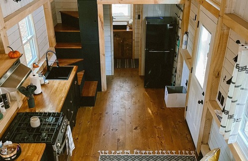 This tiny home features everything you would need for a weekend stay! Tucked in the woods on our property , hiking all around, and 30 min from Penn State University. Main floor bedroom,full bathroom, full kitchen, and fire pit outside! Our tiny home has beautiful exposed wood mortise and tenon beams which makes it cozy and warm! We are surrounded by many beautiful fishing spots, hunting areas, and hiking. Only a 40 min drive to Raystown Lake.