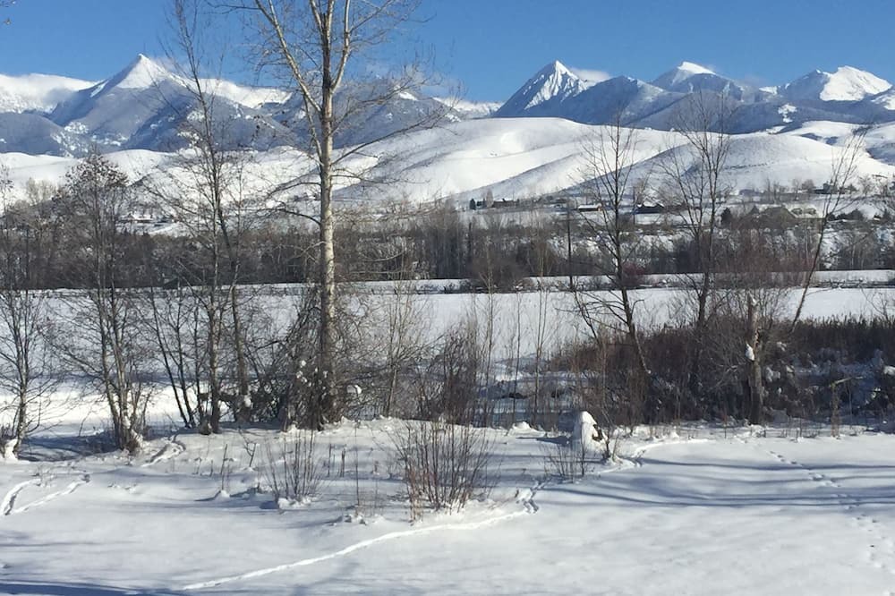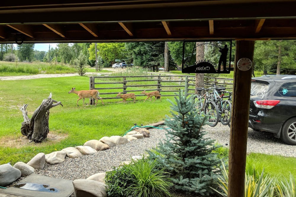 Beautiful water front cabin in Carmen, ID, (just 4 miles down river from downtown Salmon). Year round recreation hub for hunting, steelhead and salmon fishing, rafting, kayaking, horseback riding, bike riding, and any other imaginable outdoor recreation! Fish from the yard or float many of the easily accessible stretches of the Salmon River. Bring your horses as there are corrals and pasture available. Watch deer in the yard or view the amazing mountains of the continental divide from the balcony, or relax inside by the fireplace. Sleeping arrangements include a loft with a queen bed, bunk room with queen and twin bunks, and window seating comprised of two twin beds. Ask us about options for your next family reunion.