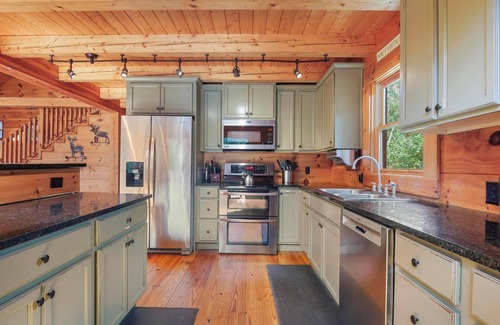Unwind in this 3-story mountain cabin overlooking the iconic golf hole featured in Dirty Dancing! Set in Rumbling Bald Resort, it’s perfect for families and groups—sleeps 14 comfortably (16 with cots)—and includes 12 full resort passes.