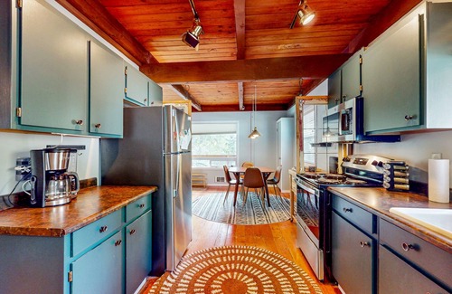 Dog-friendly cabin with decks, bunk room, washer/dryer, grill, & central AC is located in Warnick. Dog-friendly cabin with decks, bunk room, washer/dryer, grill, & central AC provides accommodation, featuring Air Conditioner, Balcony/Terrace, Security/Safety, among other amenities. This Cabin features Air Conditioner, Balcony/Terrace, Security/Safety, to make your stay a comfortable one.