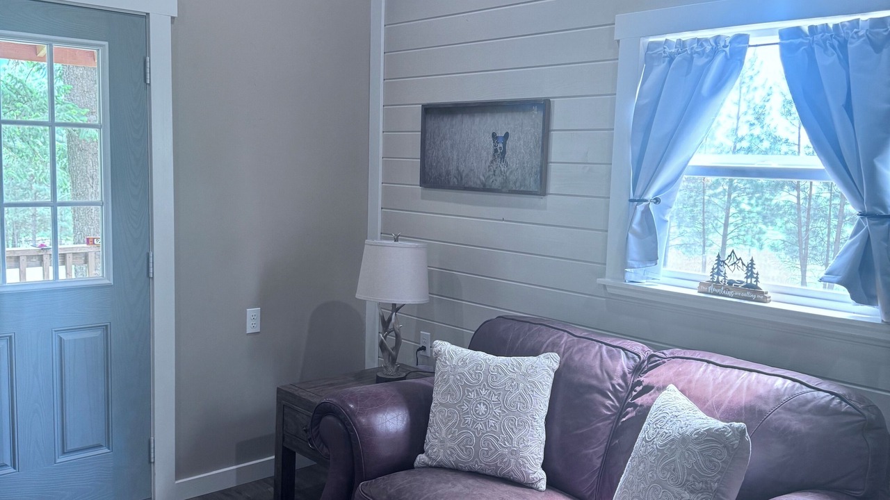 This cozy cabin sets upon a hill surrounded by trees . You have a beautiful view of Columbia mountains ! You will also get frequent wildlife that come through the property!