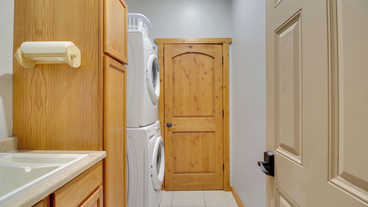 INTERIOR FEATURES: High vaulted ceilings, Smart TVs, fireplaces, office, dining room, board games, nordic mountain decor, en-suite bath w/ walk-in shower, stacked laundry machines