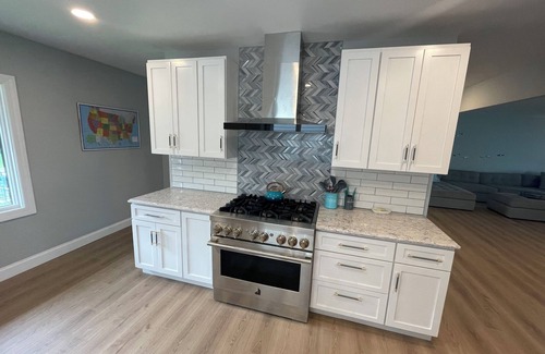 We have replaced wiring, plumbing and removed many walls. New insulation is in and the main floor is completely sheet rocked, primed and walls/ceilings painted. Our cabinetry for the kitchen is installed and JennAir Rise appliances and countertops in. New sliding door is in!!! The new furniture and decor is going together! This home will come back together very quickly! Carpet and wood floor done in entire house. As of 6/27/23.