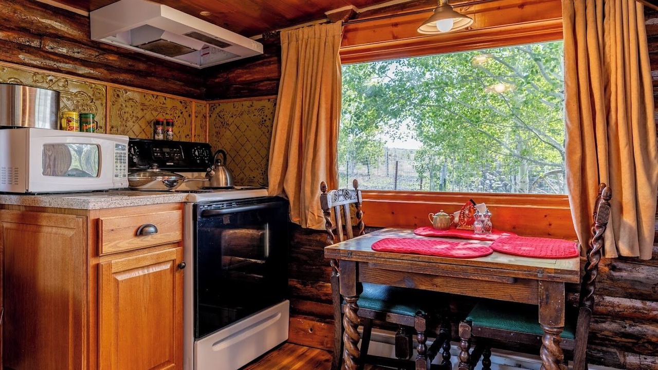 You step back in time as you enter the vaulted great room with all the character, western artwork and Native Americans collectibles of a mountain log cabin. This room also provides a queen size sleeper sofa, love seat, TV, period antiques, desk and WiFi for those who need to work remotely. A/C keeps this cabin cool and comfortable. A fully equipped kitchen, with vintage refrigerator and Hoosier cabinet, makes meal prep simple and convenient. The bedroom offers a queen bed with a serene, quaking aspen view. A clawfoot tub (with shower attachment) is another nod to the early 1900's history of this special log cabin. An expansive front porch reveals spectacular mountain views in every direction. Add the aspen and pine trees, birds and wildlife with the sound of the river and you have pure heaven! A picnic area includes a fire pit, seating, picnic table and gas grill with the same stunning views. Shared outdoor space with firepit, gas grill and outdoor seating for the guests at Highland Bunkhouse and Highland Homestead.Guests can enjoy a quarter mile of direct access to the Shoshone River, a beautiful blue-ribbon fishery with magnificent scenery. While laundry facilities are unavailable at this site, nearby Cody has two public laundromats