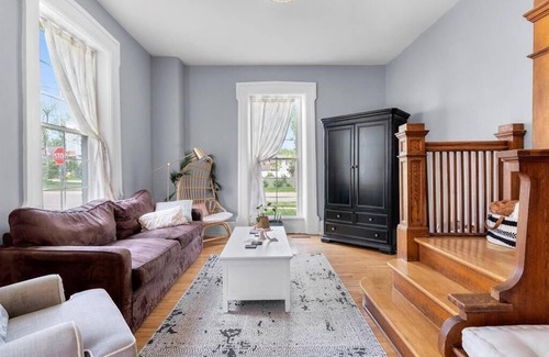 Historic 1860 Charm, Modern Amenities Comfort. This home was built in 1860 as the very first impressive Italianate style home in Marion, it has some amazing history, and incredible original woodwork throughout. In 1910, it was converted into a duplex to provide homes for railway leaders as Marion brought the railway to Linn County. This is certainly a one of a kind stay, with just the right updates to make it comfortable, and just enough original aspects to make it memorable.