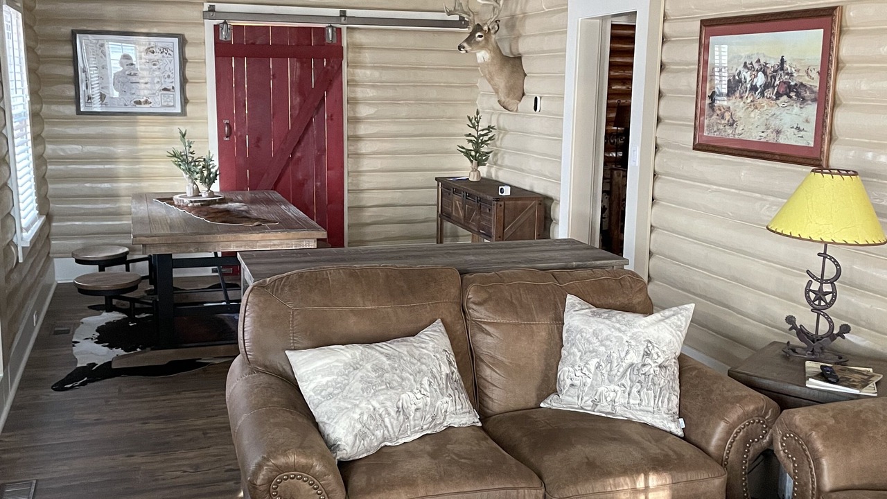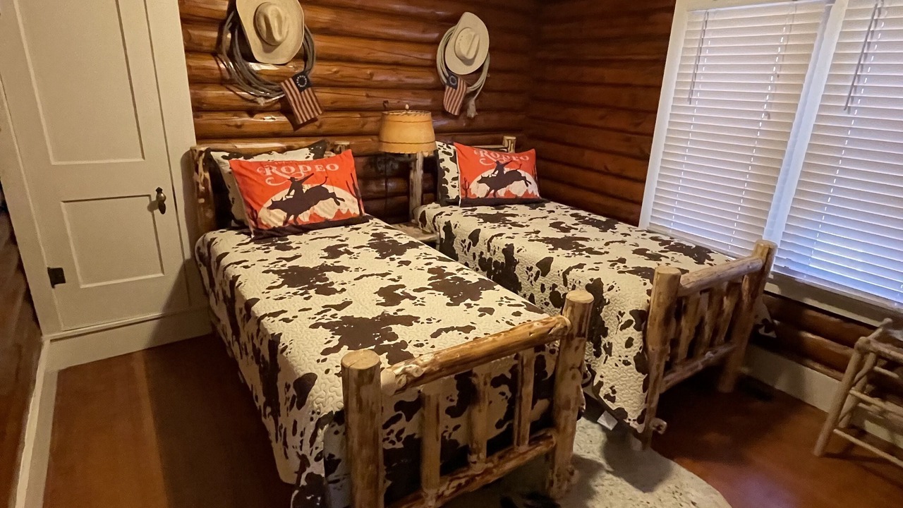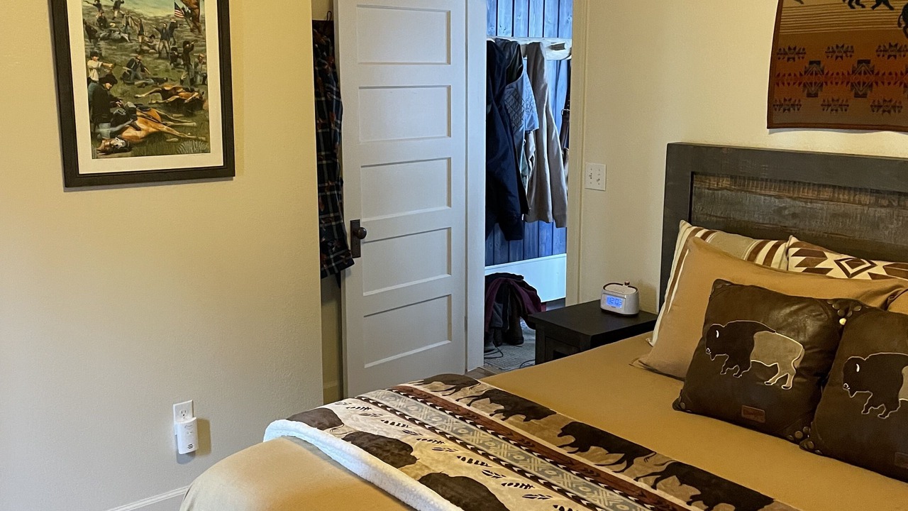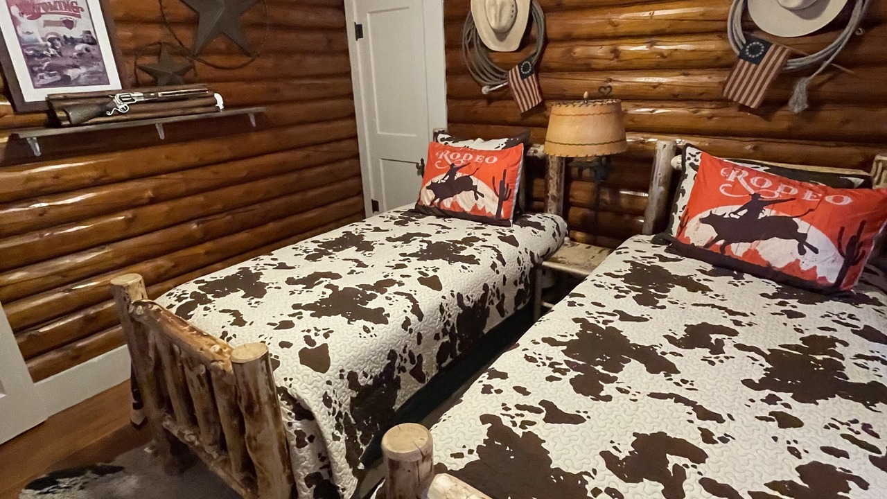 Cozy Historic Log Home on Main street 3 blocks from downtown Buffalo, quiet yet very short walk to downtown restaurants and bars,shops,etc. Large yard to relax in and enjoy a family BBQ, or just hang out. nicely decorated throughout and has everything you'll need for your stay, not your typical rental it is our home away from home and we've outfitted it the way that makes us comfortable , rental or not. If you don't know it already the Buffalo area is chuck full of old west history there are a multitude of historic sites to visit near by, there’s the Little Bighorn battlefield, Fort Kearney historic site or the Jim Gatchell museum, Occidental hotel and saloon built in 1880 with the likes of Buffalo Bill Cody and Theodore Roosevelt passing through it's doors at one time. the beautiful Johnson county courthouse built in 1884 still serves as it did when built. You'll see deer, wild turkeys wondering around town, geese, bald eagles, antelope and prairie dogs through out the area as well, of course the biggest attraction to the area is the Big Horn Mountains that offer fishing, hiking, hunting etc. We suggest doing some homework about the area and select the things that would interest you and your family ahead of time. The home was built by a Laramie county sheriff named Leslie Snow who served a role in the arrest and conviction of Tom Horn, a famous figure in western history. There is still t a "S" symbol built visible in front of the house the Snow family had built into the chimney. We call the house the Snow Cabin.