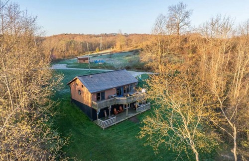 with a stay at this updated 3-bed, 3-bath cabin located just 6 miles South of Hocking Hills State Park. This vacation cabin, once owned by the beloved John Corby, allows you to decompress in complete privacy by providing easy access for serious hikers to old logging trails that lead to incredible hemlocks, majestic gorges and beautiful waterfalls just by walking out the door. Magnificent birding, frogs singing in the pond and wildlife viewing is available for those who want to unwind on the wraparound deck or relax in the 6-person hot tub. Grill dinner on the upper deck's master grill, roast marshmallows in the giant firepit stocked with wood or dine at the winery or state park attractions up the road. Wifi, DirecTV, 3 Smart TVs, games, puzzles, movies and air hockey is all available for the kids in case it rains.