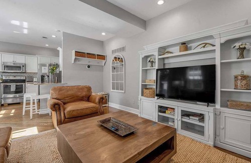 With multiple sitting areas and three private bedrooms, this spacious home is ideal for couples, families, or professionals seeking their own space. The master bedroom features a luxurious king bed, while the two upstairs bedrooms each have queen beds for a restful night’s sleep. The updated bathrooms shine with marble countertops and come stocked with plenty of plush towels to make your stay extra comfortable.