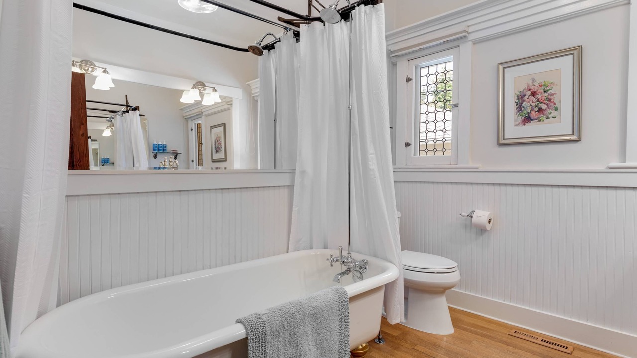 Each bedroom features quality linens on the beds that you will melt in. Plus, enjoy the plush towels after taking a soak in the clawfoot tub.