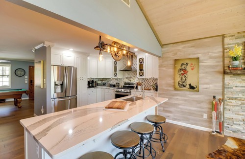 Looking for a private getaway? Stay at the Raccoon Lakehouse, a 4 bedroom, 3 bath lakefront home on 10 secluded wooded acres with over 380 feet of lake frontage. You can fish, kayak, or swim in this calm cove of the lake. Enjoy dinner on the patio overlooking the lake, with gas and charcoal grill, and an outdoor gas firepit. Later that night, gather around the wood firepit and roast marshmallows and swap stories. Back in the house you can get cozy by the gas fireplace, or challenge your family and friends to a round of pool in the game room. Enjoy watching raccoons, deer, opossums, squirrels, and foxes that come to visit.
