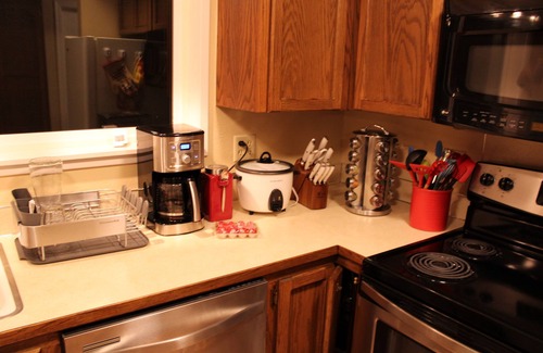 Full kitchen with dishes, utensils, and appliances. Coffeemaker, toaster, kettle. Games, books, and puzzles are available for you. Just listed.