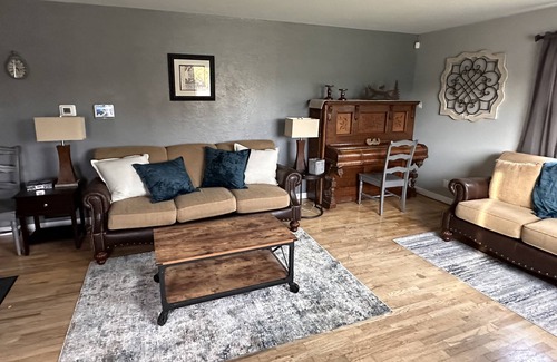 Unwind in Billings at this 2 story, spacious house. Guests can relax and stay connected in one of two living areas with heating, AC, WiFi, on two flat screen TVs with Roku and DVD. A washer, dryer, iron and a table top ironing board are provided as well as a fully stocked kitchen, linens and towels. It has a large backyard with a six foot fence for the safety of your loved ones. Two full baths. A queen bed and 2 bunkbeds on the main floor and another queen and 2 bunkbeds with lots of room to spare in a well lit cozy basement. Plenty of on street parking and a driveway that can accommodate 4 compacts, or 2 large trucks or an RV. Short Walking distance to a playground park, 2 mini malls, restaurants and fast foods. Albertsons grocery, casinos, gas stations, banks & a 24 hour fitness center. Five to fifteen minute drive to all those important places you need to go, including the airport. A great place to call homebase while you're away. Security indoor sensor alarms, and outdoor security cameras. Key code entry locks. Smoke and carbon monoxide detectors. Indoor sensors can be turned off.