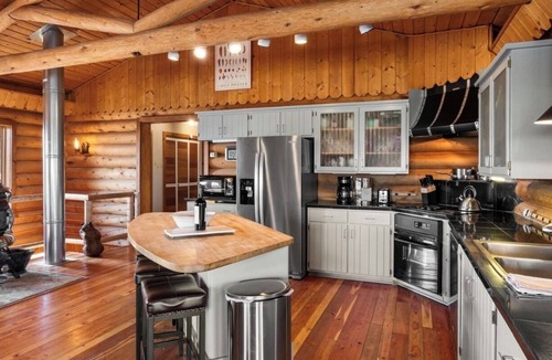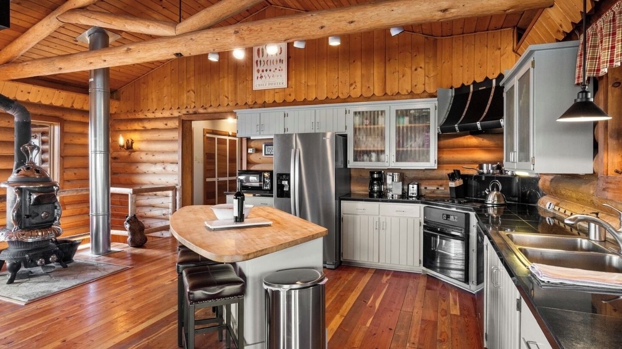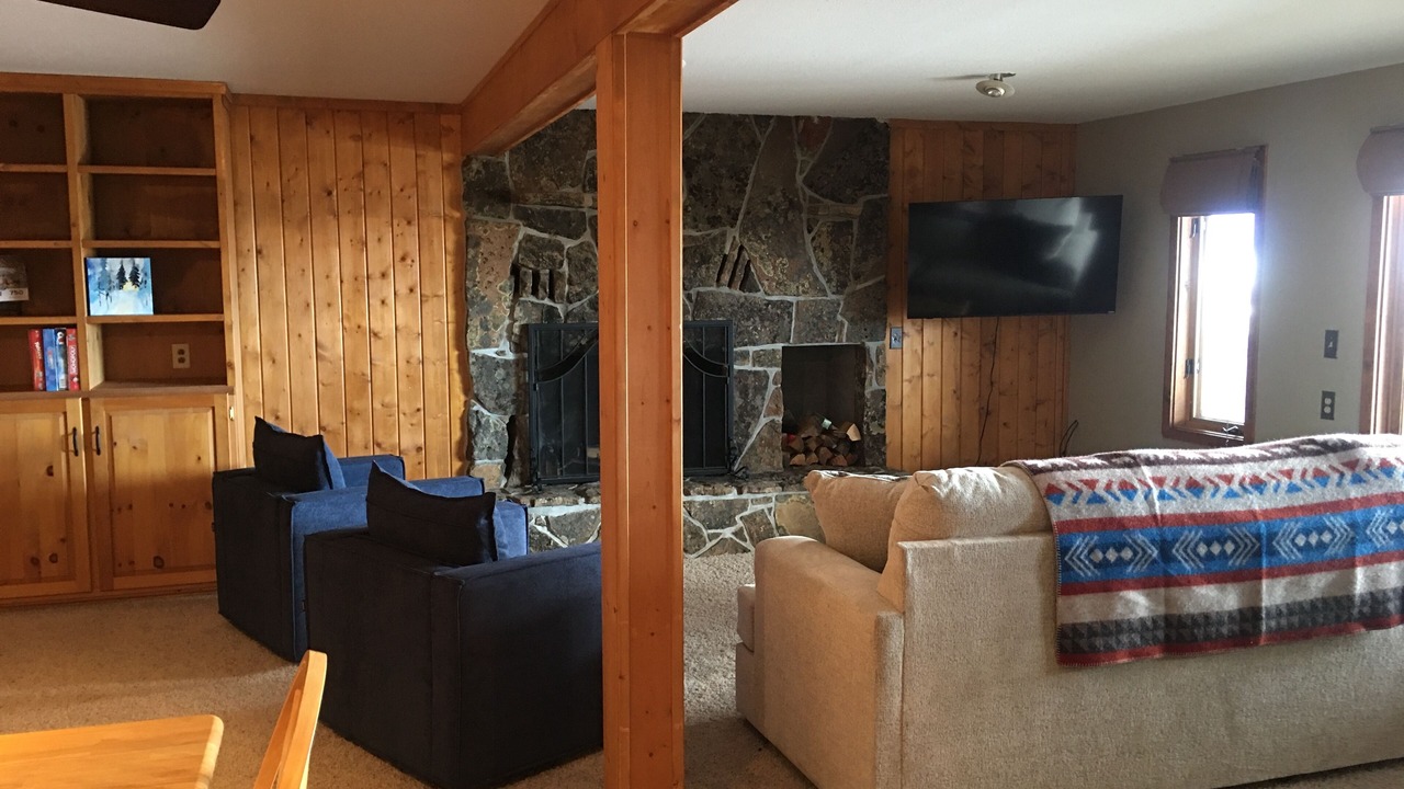 On the main level you have 3 bedroom, 2 baths, kitchen, and living room complete with a wood burning fireplace and log stove. Downstairs there is a 4th bedroom, bathroom, and an additional living room with 2nd fireplace and log stove.