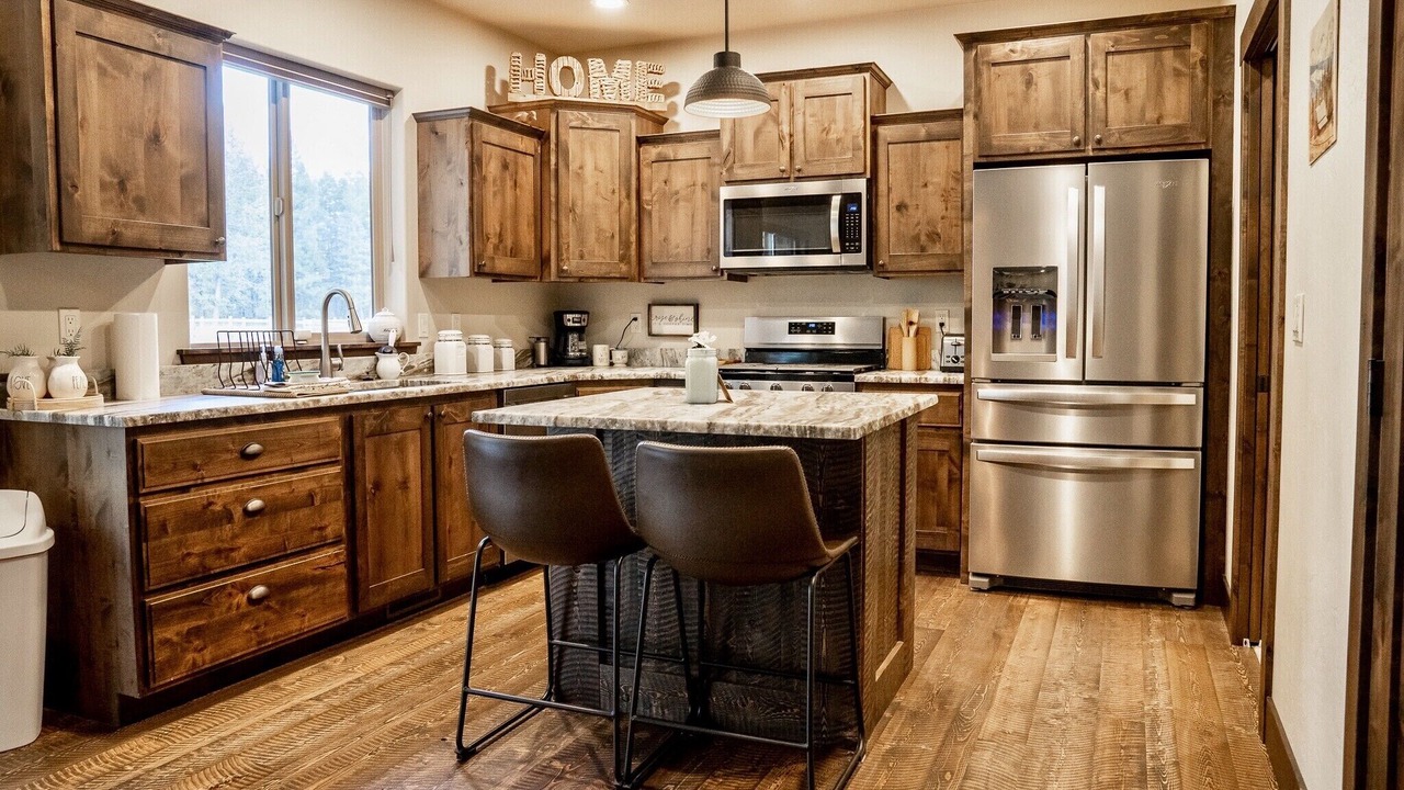 Constructed in 2019, you will love the inviting and warm decor and fine finishes. Gorgeous wood floors, dark wood doors and cabinets, live edge granite, beautiful marble and tile bathrooms, and an amazing kitchen with new stainless appliances - this home has the upgrades. 🏡