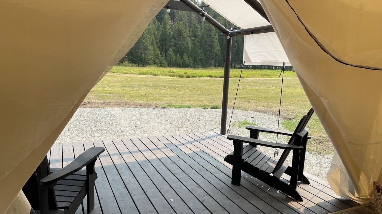 The tent is located near McGregor Lake, Hubbart Reservoir, Little Bitterroot Lake, and a multitude of hikes